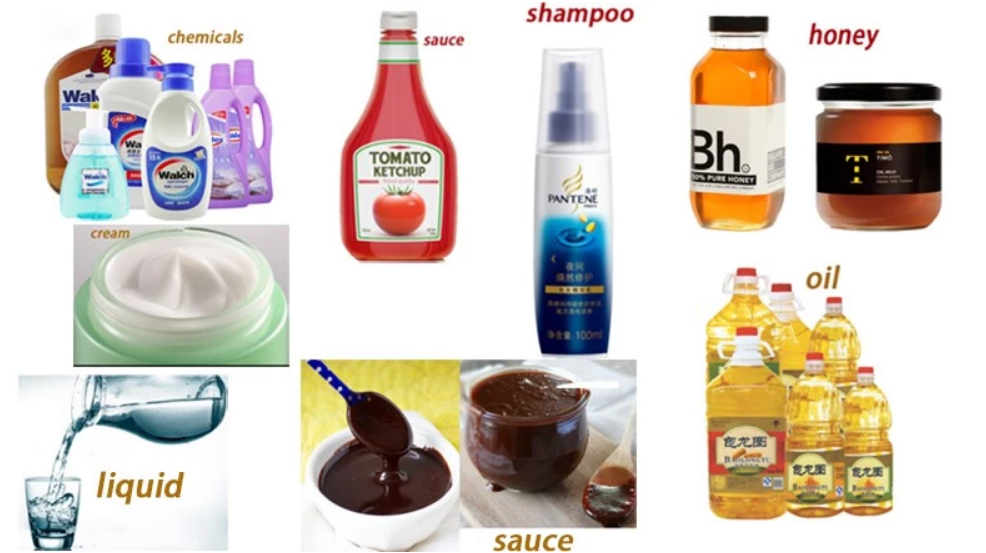 Pół-lepkie i lepkie ciecze; kocioł, musztarda, syropy, salsa, majonez, miód, masło orzechowe, galaretki, sosy zanurzeniowe, balsam do ust, szampon, gęste mydła, żele do stylizacji, maseczki do twarzy, wosk, klej, smar, uszczelniacze, silikon i wiele więcej