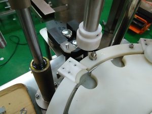 Gdy butelka przejdzie do tej stacji, głowica zakręcająca dokręci ją automatycznie.